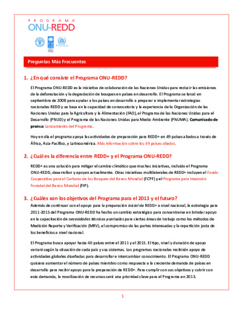Home Document Library UN-REDD Programme FAQs (Spanish) UN-REDD Programme FAQs (Spanish) Thu, 13 Feb, 2014 Download the resource Format: application/pdf Size: (0.321 MB) download Filed under: Category Empty Related publications View all Foundation documents 23 May, 2025UN-REDD Programme Developer 23/05/2025 - Document Download English 21 May, 2025UN-REDD Programme Draft UN-REDD 2026-2030 Strategy Download English 21 May, 2025UN-REDD Programme Draft Monitoring and Evaluation Framework UN-REDD 2026-30 Download English