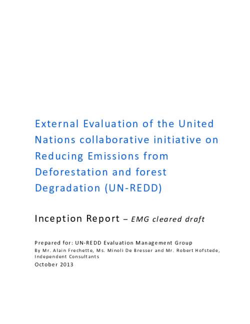 Home Document Library UN-REDD_PB11_Programme Evaluation Draft Inception Report UN-REDD_PB11_Programme Evaluation Draft Inception Report Mon, 25 Nov, 2013 Download the resource Format: application/pdf Size: (0.746 MB) download Filed under: Category Empty Related publications View all Foundation documents 23 May, 2025UN-REDD Programme Developer 23/05/2025 - Document Download English 21 May, 2025UN-REDD Programme Draft UN-REDD 2026-2030 Strategy Download English 21 May, 2025UN-REDD Programme Draft Monitoring and Evaluation Framework UN-REDD 2026-30 Download English