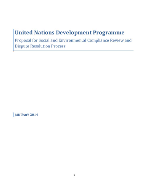 Home Document Library UNDP Social and Environmental Compliance Review and Dispute Resolution Process.EN UNDP Social and Environmental Compliance Review and Dispute Resolution Process.EN Mon, 20 Jan, 2014 Download the resource Format: application/pdf Size: (0.959 MB) download Filed under: Related publications View all Foundation documents 23 May, 2025UN-REDD Programme Developer 23/05/2025 - Document Download English 21 May, 2025UN-REDD Programme Draft UN-REDD 2026-2030 Strategy Download English 21 May, 2025UN-REDD Programme Draft Monitoring and Evaluation Framework UN-REDD 2026-30 Download English