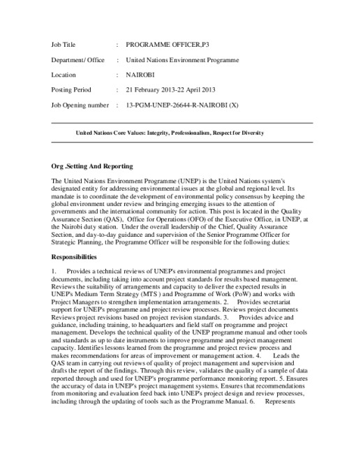 Home Document Library UNEP_P3 Vacancy UNEP_P3 vacancy Fri, 22 Mar, 2013 Download the resource Format: application/pdf Size: (0.009 MB) download Filed under: Tags UNEP vacancy Category Empty Related publications View all Foundation documents 23 May, 2025UN-REDD Programme Developer 23/05/2025 - Document Download English 21 May, 2025UN-REDD Programme Draft UN-REDD 2026-2030 Strategy Download English 21 May, 2025UN-REDD Programme Draft Monitoring and Evaluation Framework UN-REDD 2026-30 Download English