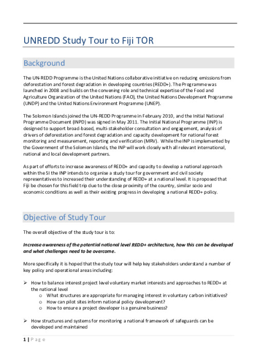 Home Document Library UNREDD Study Tour To Fiji TOR UNREDD Study Tour to Fiji TOR Tue, 27 Aug, 2013 Download the resource Format: application/pdf Size: (0.454 MB) download Filed under: Category Empty Related publications View all Foundation documents 23 May, 2025UN-REDD Programme Developer 23/05/2025 - Document Download English 21 May, 2025UN-REDD Programme Draft UN-REDD 2026-2030 Strategy Download English 21 May, 2025UN-REDD Programme Draft Monitoring and Evaluation Framework UN-REDD 2026-30 Download English