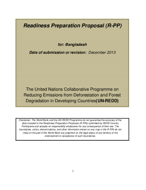 Home Document Library UNREDD_PB 11_Bangladesh R-PP_EN UNREDD_PB 11_Bangladesh R-PP_EN Sun, 24 Nov, 2013 Download the resource Format: application/pdf Size: (2.656 MB) download Filed under: Category Empty Related publications View all Foundation documents 23 May, 2025UN-REDD Programme Developer 23/05/2025 - Document Download English 21 May, 2025UN-REDD Programme Draft UN-REDD 2026-2030 Strategy Download English 21 May, 2025UN-REDD Programme Draft Monitoring and Evaluation Framework UN-REDD 2026-30 Download English
