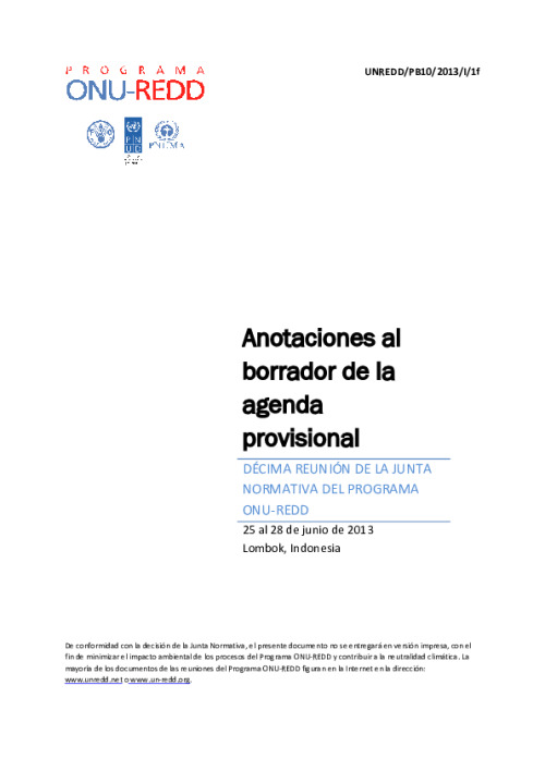 Home Document Library UNREDD_PB10_2013_Annotated Agenda_SP (11 June) UNREDD_PB10_2013_Annotated Agenda_SP (11 June) Tue, 11 Jun, 2013 Download the resource Format: application/pdf Size: (0.184 MB) download Filed under: Category Empty Related publications View all Foundation documents 23 May, 2025UN-REDD Programme Developer 23/05/2025 - Document Download English 21 May, 2025UN-REDD Programme Draft UN-REDD 2026-2030 Strategy Download English 21 May, 2025UN-REDD Programme Draft Monitoring and Evaluation Framework UN-REDD 2026-30 Download English