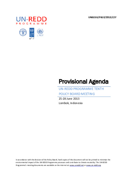 Home Document Library UNREDD_PB10_Draft Provisional Agenda_EN UNREDD_PB10_Draft Provisional Agenda_EN Mon, 10 Jun, 2013 Download the resource Format: application/pdf Size: (0.097 MB) download Filed under: Tags PB 10 draft provisional agenda Category Empty Related publications View all Foundation documents 23 May, 2025UN-REDD Programme Developer 23/05/2025 - Document Download English 21 May, 2025UN-REDD Programme Draft UN-REDD 2026-2030 Strategy Download English 21 May, 2025UN-REDD Programme Draft Monitoring and Evaluation Framework UN-REDD 2026-30 Download English