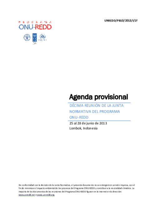 Home Document Library UNREDD_PB10_Draft Provisional Agenda_SP UNREDD_PB10_Draft Provisional Agenda_SP Mon, 10 Jun, 2013 Download the resource Format: application/pdf Size: (0.091 MB) download Filed under: Tags PB 10 draft provisional agenda Category Empty Related publications View all Foundation documents 23 May, 2025UN-REDD Programme Developer 23/05/2025 - Document Download English 21 May, 2025UN-REDD Programme Draft UN-REDD 2026-2030 Strategy Download English 21 May, 2025UN-REDD Programme Draft Monitoring and Evaluation Framework UN-REDD 2026-30 Download English