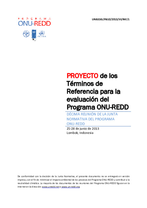 Home Document Library UNREDD_PB10_External Evaluation ToR DRAFT_SP UNREDD_PB10_External Evaluation ToR DRAFT_SP Mon, 10 Jun, 2013 Download the resource Format: application/pdf Size: (0.283 MB) download Filed under: Category Empty Related publications View all Foundation documents 23 May, 2025UN-REDD Programme Developer 23/05/2025 - Document Download English 21 May, 2025UN-REDD Programme Draft UN-REDD 2026-2030 Strategy Download English 21 May, 2025UN-REDD Programme Draft Monitoring and Evaluation Framework UN-REDD 2026-30 Download English