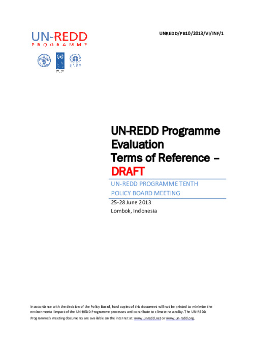 Home Document Library UNREDD_PB10_External Evaluation ToR_DRAFT_EN UNREDD_PB10_External Evaluation ToR_DRAFT_EN Mon, 10 Jun, 2013 Download the resource Format: application/pdf Size: (0.271 MB) download Filed under: Tags Draft Programme Eval TOR Category Empty Related publications View all Foundation documents 23 May, 2025UN-REDD Programme Developer 23/05/2025 - Document Download English 21 May, 2025UN-REDD Programme Draft UN-REDD 2026-2030 Strategy Download English 21 May, 2025UN-REDD Programme Draft Monitoring and Evaluation Framework UN-REDD 2026-30 Download English
