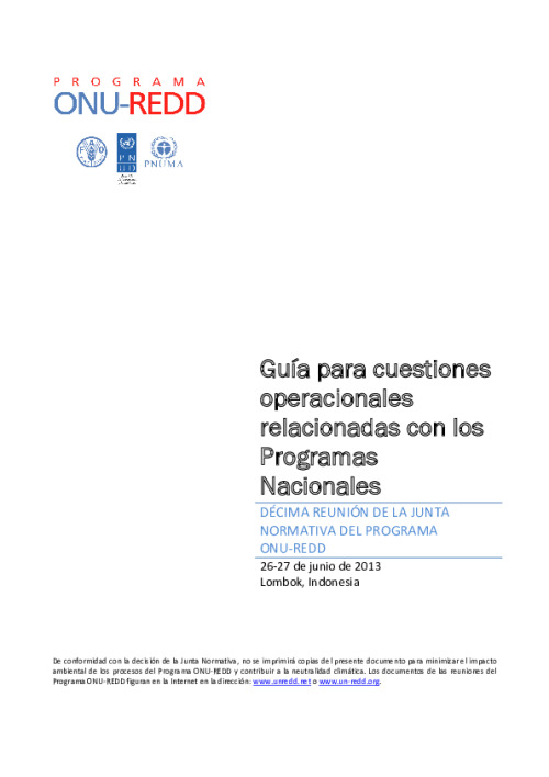 Home Document Library UNREDD_PB10_Guiding Note_SP UNREDD_PB10_Guiding Note_SP Fri, 07 Jun, 2013 Download the resource Format: application/pdf Size: (0.36 MB) download Filed under: Tags guiding note on operational matters for NPs Spanish Category Empty Related publications View all Foundation documents 23 May, 2025UN-REDD Programme Developer 23/05/2025 - Document Download English 21 May, 2025UN-REDD Programme Draft UN-REDD 2026-2030 Strategy Download English 21 May, 2025UN-REDD Programme Draft Monitoring and Evaluation Framework UN-REDD 2026-30 Download English