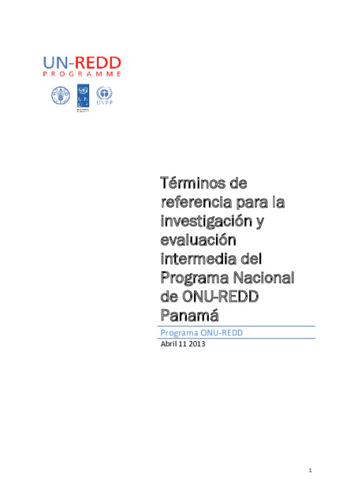 Home Document Library UNREDD_PB10_Terminos de Referencia Investigacion E Evaluacion Panama 12 Abril 2013- ES UNREDD_PB10_Terminos de Referencia Investigacion e Evaluacion Panama 12 Abril 2013- ES Fri, 21 Jun, 2013 Download the resource Format: application/pdf Size: (0.604 MB) download Filed under: Category Empty Related publications View all Foundation documents 23 May, 2025UN-REDD Programme Developer 23/05/2025 - Document Download English 21 May, 2025UN-REDD Programme Draft UN-REDD 2026-2030 Strategy Download English 21 May, 2025UN-REDD Programme Draft Monitoring and Evaluation Framework UN-REDD 2026-30 Download English