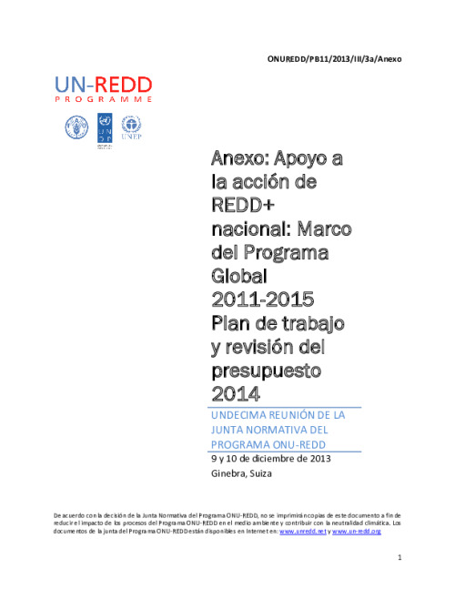 Home Document Library UNREDD_PB11_3a_Annex _SNA Budget Revision_ES UNREDD_PB11_3a_Annex _SNA Budget Revision_ES Sun, 08 Dec, 2013 Download the resource Format: application/pdf Size: (0.829 MB) download Filed under: Category Empty Related publications View all Foundation documents 23 May, 2025UN-REDD Programme Developer 23/05/2025 - Document Download English 21 May, 2025UN-REDD Programme Draft UN-REDD 2026-2030 Strategy Download English 21 May, 2025UN-REDD Programme Draft Monitoring and Evaluation Framework UN-REDD 2026-30 Download English