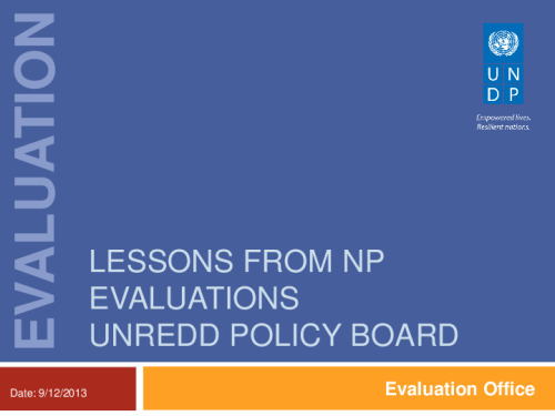 Home Document Library UNREDD_PB11_Presentation 4a Programme Evaluation UNREDD_PB11_Presentation 4a Programme Evaluation Tue, 10 Dec, 2013 Download the resource Format: application/pdf Size: (0.147 MB) download Filed under: Category Empty Related publications View all Foundation documents 23 May, 2025UN-REDD Programme Developer 23/05/2025 - Document Download English 21 May, 2025UN-REDD Programme Draft UN-REDD 2026-2030 Strategy Download English 21 May, 2025UN-REDD Programme Draft Monitoring and Evaluation Framework UN-REDD 2026-30 Download English
