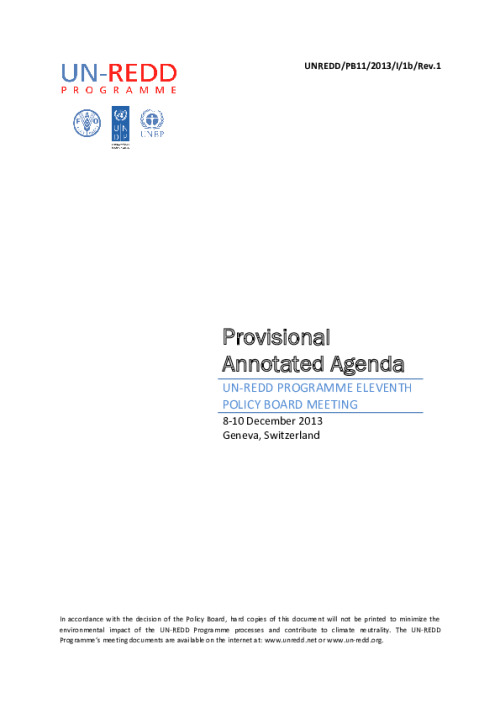 Home Document Library UNREDD_PB11_Provisional Annotated Agenda_EN UNREDD_PB11_Provisional Annotated Agenda_EN Mon, 25 Nov, 2013 Download the resource Format: application/pdf Size: (0.303 MB) download Filed under: Category Empty Related publications View all Foundation documents 23 May, 2025UN-REDD Programme Developer 23/05/2025 - Document Download English 21 May, 2025UN-REDD Programme Draft UN-REDD 2026-2030 Strategy Download English 21 May, 2025UN-REDD Programme Draft Monitoring and Evaluation Framework UN-REDD 2026-30 Download English
