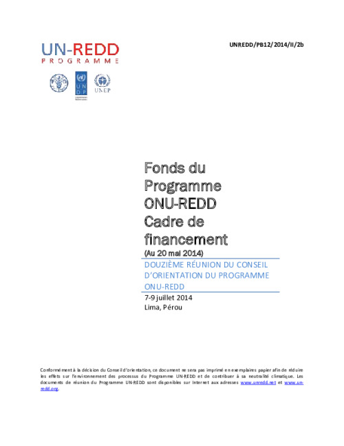 Home Document Library UNREDD_PB12_2014_II_2b_Funding Framework (FRN) UNREDD_PB12_2014_II_2b_Funding Framework (FRN) Mon, 09 Jun, 2014 Download the resource Format: application/pdf Size: (0.365 MB) download Filed under: Category Empty Related publications View all Foundation documents 23 May, 2025UN-REDD Programme Developer 23/05/2025 - Document Download English 21 May, 2025UN-REDD Programme Draft UN-REDD 2026-2030 Strategy Download English 21 May, 2025UN-REDD Programme Draft Monitoring and Evaluation Framework UN-REDD 2026-30 Download English