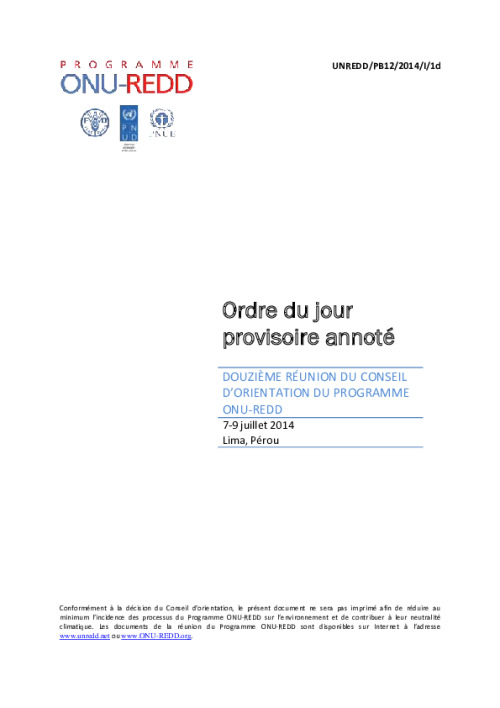 Home Document Library UNREDD_PB12_2014_Provisional Annotated Agenda_FR (29 June) UNREDD_PB12_2014_Provisional Annotated Agenda_FR (29 June) Tue, 01 Jul, 2014 Download the resource Format: application/pdf Size: (0.399 MB) download Filed under: Category Empty Related publications View all Foundation documents 23 May, 2025UN-REDD Programme Developer 23/05/2025 - Document Download English 21 May, 2025UN-REDD Programme Draft UN-REDD 2026-2030 Strategy Download English 21 May, 2025UN-REDD Programme Draft Monitoring and Evaluation Framework UN-REDD 2026-30 Download English