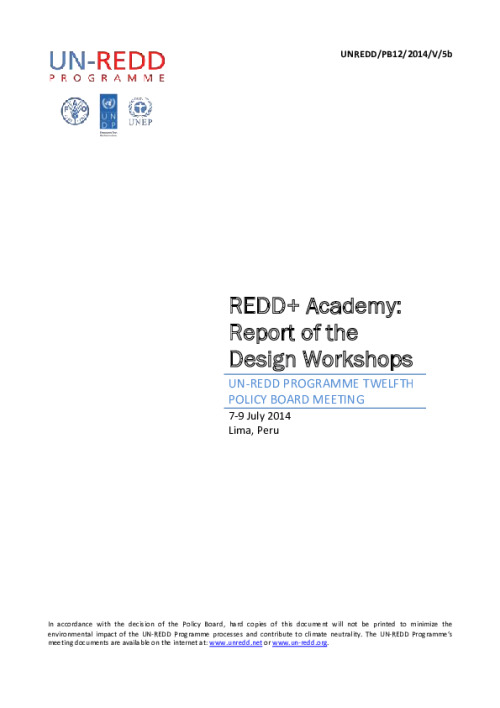 Home Document Library UNREDD_PB12_2014_V_5b_Report of The REDD+ Academy Design Workshops (ENG) UNREDD_PB12_2014_V_5b_Report of the REDD+ Academy Design Workshops (ENG) Mon, 23 Jun, 2014 Download the resource Format: application/pdf Size: (0.516 MB) download Filed under: Category Empty Related publications View all Foundation documents 23 May, 2025UN-REDD Programme Developer 23/05/2025 - Document Download English 21 May, 2025UN-REDD Programme Draft UN-REDD 2026-2030 Strategy Download English 21 May, 2025UN-REDD Programme Draft Monitoring and Evaluation Framework UN-REDD 2026-30 Download English