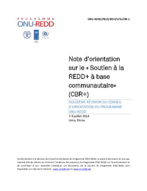 Home Document Library UNREDD_PB12_2014_V_5c_INF_CBR+ Guidance Note_FR UNREDD_PB12_2014_V_5c_INF_CBR+ Guidance Note_FR Tue, 24 Jun, 2014 Download the resource Format: application/pdf Size: (0.657 MB) download Filed under: Category Empty Related publications View all Foundation documents 23 May, 2025UN-REDD Programme Developer 23/05/2025 - Document Download English 21 May, 2025UN-REDD Programme Draft UN-REDD 2026-2030 Strategy Download English 21 May, 2025UN-REDD Programme Draft Monitoring and Evaluation Framework UN-REDD 2026-30 Download English
