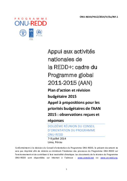 Home Document Library UNREDD_PB12_2014_VI_6a_INF_SNA 2015 Budget Priorities_CommResponseMatrix_FR UNREDD_PB12_2014_VI_6a_INF_SNA 2015 budget priorities_CommResponseMatrix_FR Tue, 24 Jun, 2014 Download the resource Format: application/pdf Size: (0.793 MB) download Filed under: Category Empty Related publications View all Foundation documents 23 May, 2025UN-REDD Programme Developer 23/05/2025 - Document Download English 21 May, 2025UN-REDD Programme Draft UN-REDD 2026-2030 Strategy Download English 21 May, 2025UN-REDD Programme Draft Monitoring and Evaluation Framework UN-REDD 2026-30 Download English