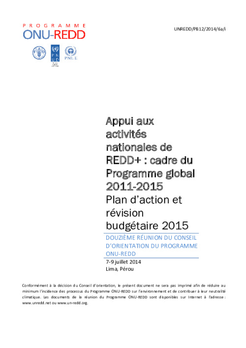 Home Document Library UNREDD_PB12_6a_i_SNA_Workplan and Budget Revision 2015_FR UNREDD_PB12_6a_i_SNA_Workplan and Budget Revision 2015_FR Mon, 23 Jun, 2014 Download the resource Format: application/pdf Size: (1.295 MB) download Filed under: Category Empty Related publications View all Foundation documents 23 May, 2025UN-REDD Programme Developer 23/05/2025 - Document Download English 21 May, 2025UN-REDD Programme Draft UN-REDD 2026-2030 Strategy Download English 21 May, 2025UN-REDD Programme Draft Monitoring and Evaluation Framework UN-REDD 2026-30 Download English