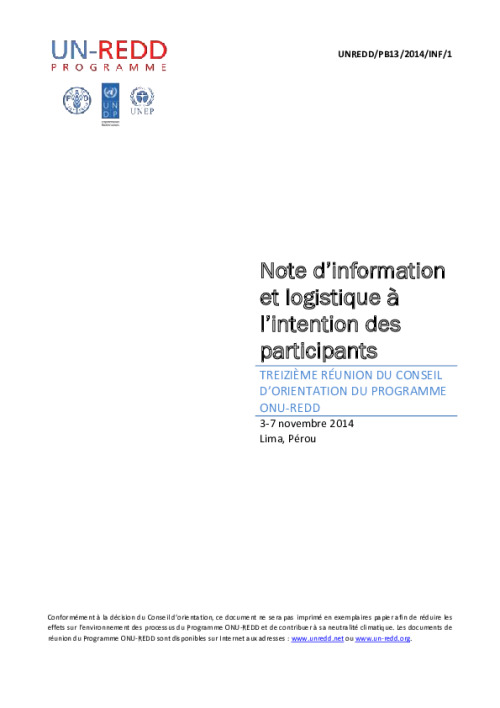 Home Document Library UNREDD_PB13_2014_INF1_Info-Logistics Note_FR UNREDD_PB13_2014_INF1_Info-Logistics Note_FR Fri, 17 Oct, 2014 Download the resource Format: application/pdf Size: (0.263 MB) download Filed under: Category Empty Related publications View all Foundation documents 23 May, 2025UN-REDD Programme Developer 23/05/2025 - Document Download English 21 May, 2025UN-REDD Programme Draft UN-REDD 2026-2030 Strategy Download English 21 May, 2025UN-REDD Programme Draft Monitoring and Evaluation Framework UN-REDD 2026-30 Download English