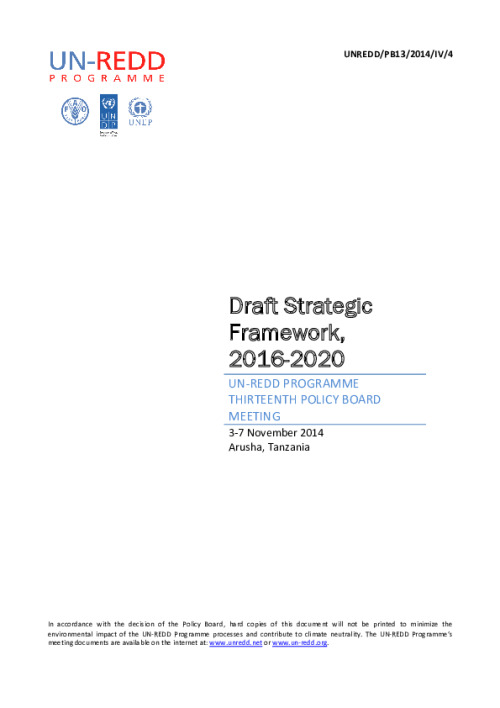 Home Document Library UNREDD_PB13_2014_IV_4 - Draft Strategic Framework (EN) UNREDD_PB13_2014_IV_4 - Draft Strategic Framework (EN) Thu, 23 Oct, 2014 Download the resource Format: application/pdf Size: (0.27 MB) download Filed under: Category Empty Related publications View all Foundation documents 23 May, 2025UN-REDD Programme Developer 23/05/2025 - Document Download English 21 May, 2025UN-REDD Programme Draft UN-REDD 2026-2030 Strategy Download English 21 May, 2025UN-REDD Programme Draft Monitoring and Evaluation Framework UN-REDD 2026-30 Download English