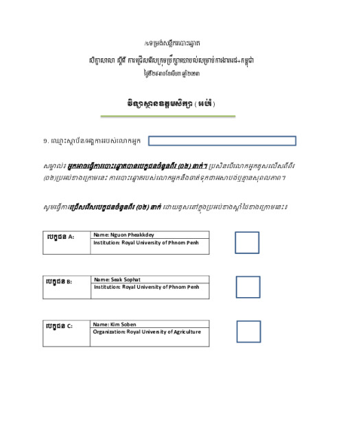 Home Document Library Voting Forms - Academia (KH) Voting Forms - Academia (KH) Thu, 24 Oct, 2013 Download the resource Format: application/pdf Size: (0.128 MB) download Filed under: Category Empty Related publications View all Foundation documents 23 May, 2025UN-REDD Programme Developer 23/05/2025 - Document Download English 21 May, 2025UN-REDD Programme Draft UN-REDD 2026-2030 Strategy Download English 21 May, 2025UN-REDD Programme Draft Monitoring and Evaluation Framework UN-REDD 2026-30 Download English
