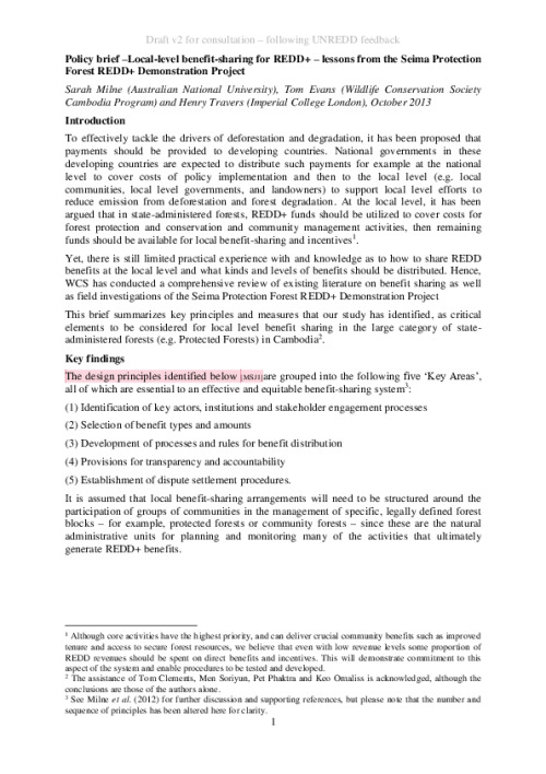 Home Document Library WCS Contract 1 Deliverable 5 Policy Brief On Local Benefit Sharing WCS Contract 1 Deliverable 5 Policy brief on local benefit sharing Wed, 28 May, 2014 Download the resource Format: application/pdf Size: (0.338 MB) download Filed under: Category Empty Related publications View all Foundation documents 23 May, 2025UN-REDD Programme Developer 23/05/2025 - Document Download English 21 May, 2025UN-REDD Programme Draft UN-REDD 2026-2030 Strategy Download English 21 May, 2025UN-REDD Programme Draft Monitoring and Evaluation Framework UN-REDD 2026-30 Download English