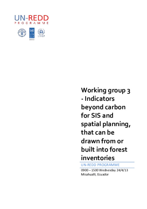 Working group 3 - Indicators beyond carbon for SIS and spatial planning, that can be drawn from or built into forest inventories