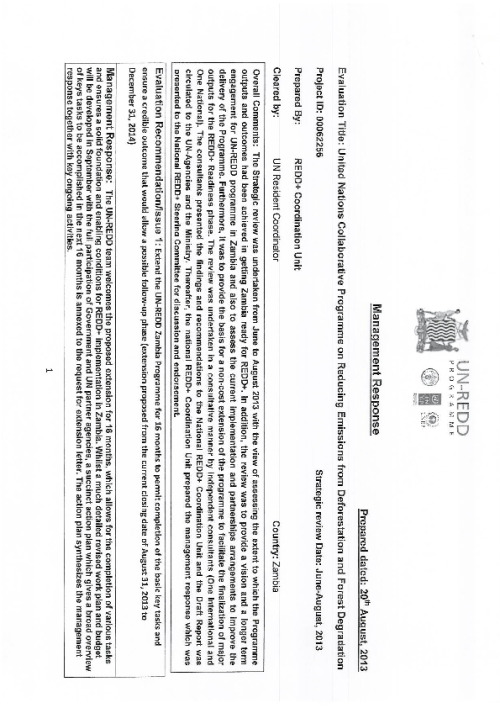 Full documentation submitted by the National Programme in Zambia, justifying and requesting a no-cost extension of the programme and providing a management response and adjusted action plan.